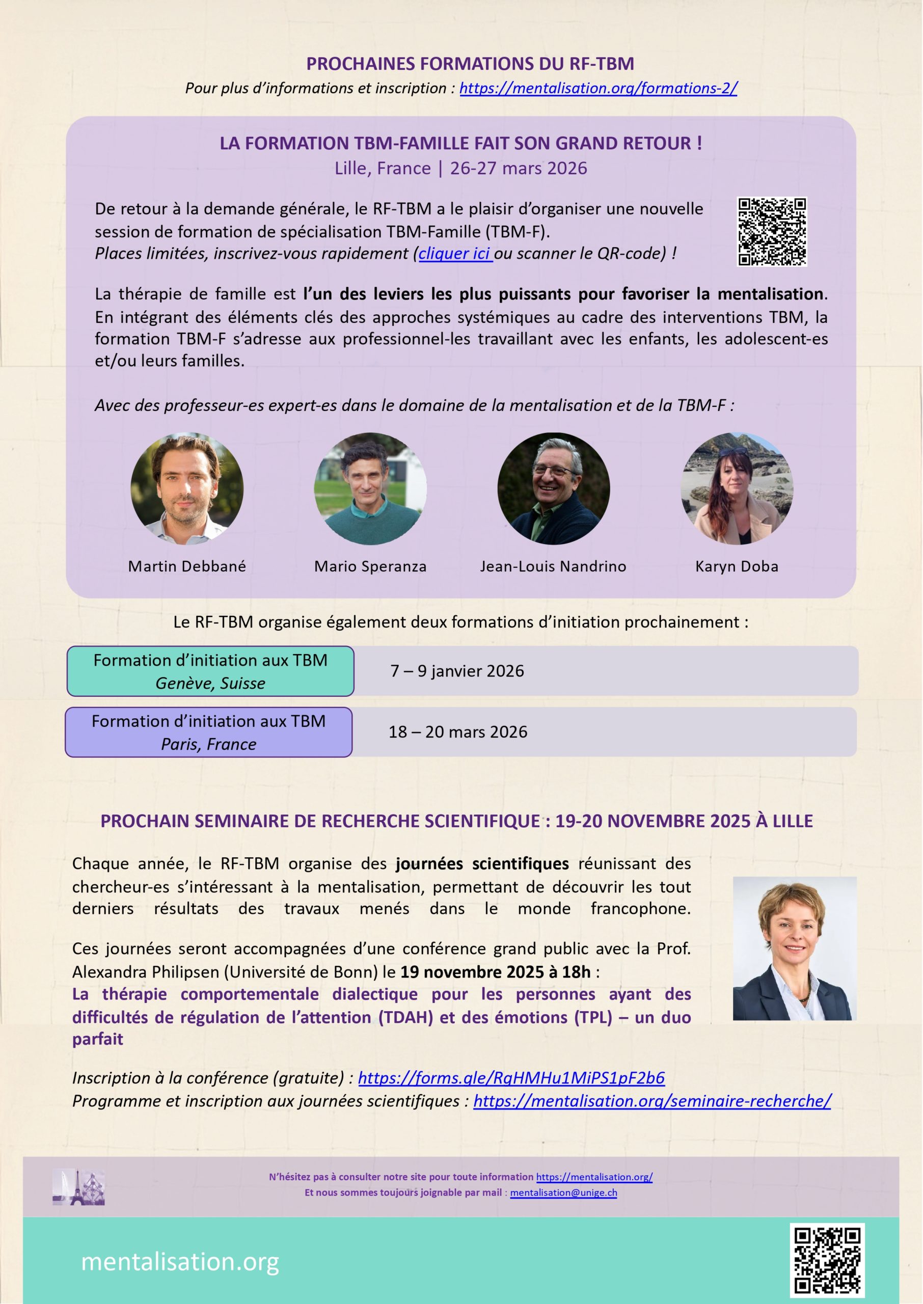 Les newsletters sont éditées en avril et en octobre chaque année. Vous y retrouverez toutes les nouveautés, les derniers évènements, les formations à venir, les nouvelles des formations passées, des informations et des liens utiles, des articles de nos membres, des informations sur les nouvelles publications d’articles marquants, etc.